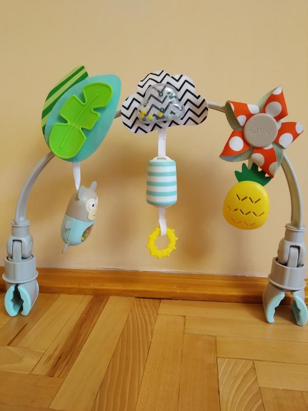 Гибкая дуга для коляски "Тропический оркестр" - это три игрушки, которые погрузят малыша в гармонию тропиков, где бегают веселые обезьянки, светит солнышко и растут ананасы. Особенности: Игрушки выполнены в приятных для глаз цветах Малыша будут развлекать три подвески: обезьянка под зеленой пальмой, желтое солнышко под облачкой, ананас с цветочкой.