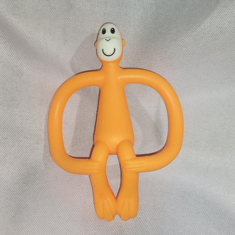 Игрушка - прорезыватель Matchstick Monkey Обезьянка оранжевая 10,5 см, 3 мес.+, из пищевого силикона с щеткой для десен
