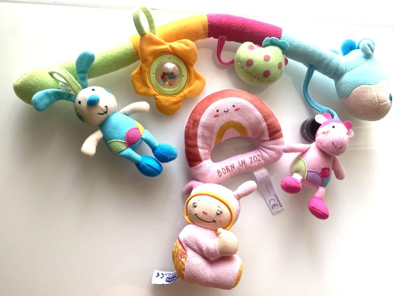 Недорого Іграшки в прекрасному стані, брязкальця для немовлят. Гусінь -іграшка с чотирма прикольними брязкальцями, можна прікрипити до ліжечка немовля або до коляски. Chicco Лунтік, та ще іграшка-брязкальце. Ціна за весь комплект.