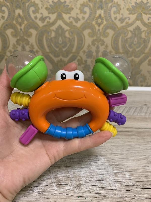 Погремушка-прорезыватель Мистер Краб имеет забавные гремящие клешни. Игрушка идеально подходит для жеваний и исследования ее. Рельефная поверхность краба оказывает приятный успокаивающий массаж десен малыша.