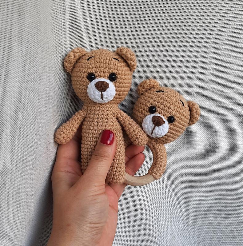 Мишка игрушка, мишка погремушка, мишка вязаный, мягкая игрушка, для младенцев, набор игруш...