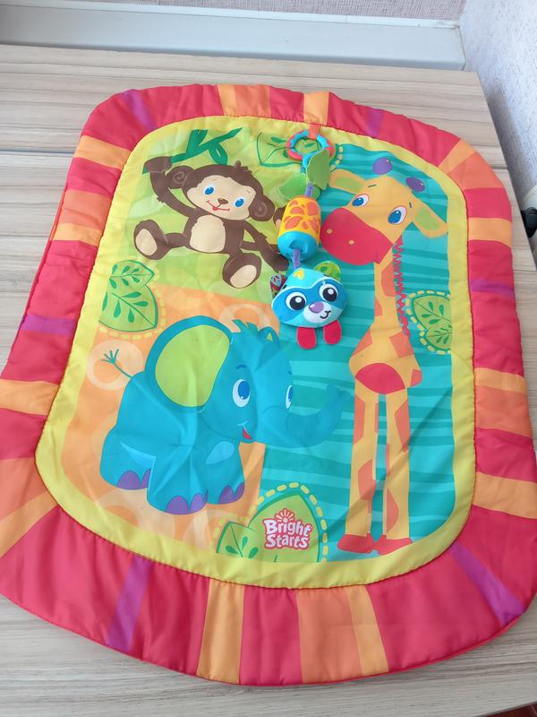 Коврик Bright Starts Сафари Разработан, чтобы стимулировать чувства и поддерживать моторное развитие ребенка в первый год жизни. Насыщенные цвета и мягкость заставят вашего ребенка проводить время на этом коврике. Коврик оснащен съемной подушкой, которая сделает отдых и игры в компании родителей приятнее. Подходит для малышей с рождения. Вы можете стирать коврик, поэтому вы сможете легко поддерживать его в чистоте. Состояние очень хорошее, но нет подушечки. Добавила подвеску Tiny love с маленьким нюансом Цена: 150 грн