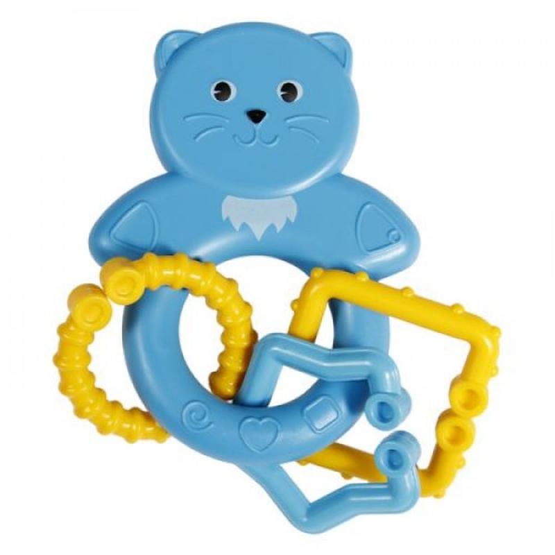Игрушка-погремушка синий котик. Имеет интересную форму и вид милого кота. Также имеет дополнительный квадрат, звезду и кольцо. Все детали способствуют развитию мелкой моторики, тактильных ощущений и помогают познавать мир. Изготовлен из гипоаллергенных пластиковых материалов. Также отлично развлекает приятным звуком._