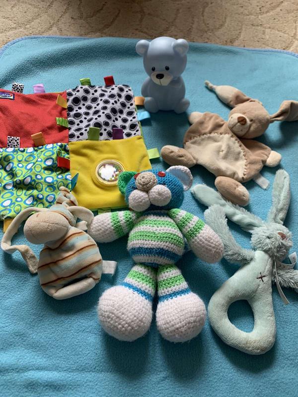 Первые безопасные игрушки малыша, шуршалка, комфортер,медвежонок светится, как ночник.