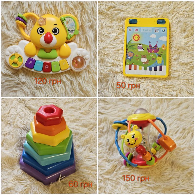 Игрушка детская "Пианино Коала", УКРАИНСКИЙ озвучик, развивающая, музыкальная, с подсветкой. Умный планшет. Нажимайте кнопки животных, чтобы получить различные звуки. Игрушка развивающая "Пирамидка-радуга", 6 деталей + платформа. Мячик с вращающимися элементами.