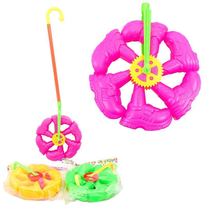 Іграшка-каталка "Колесо", 3 кольори. Довга ручка. Матеріал - пластик. Упаковка - пакет. Розмір - 30х24х3 см.