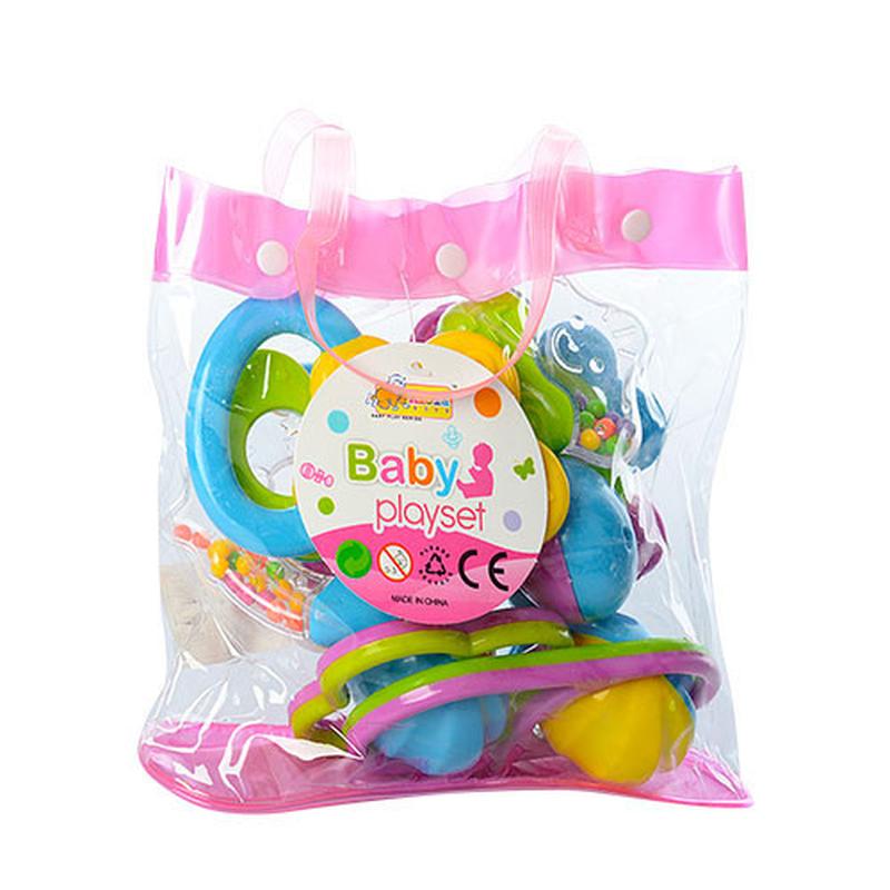 Замечательный и функциональный подарочный набор молодым родителям для малыша включает в себя 7 погремушек, которые можно сложить в сумочку.