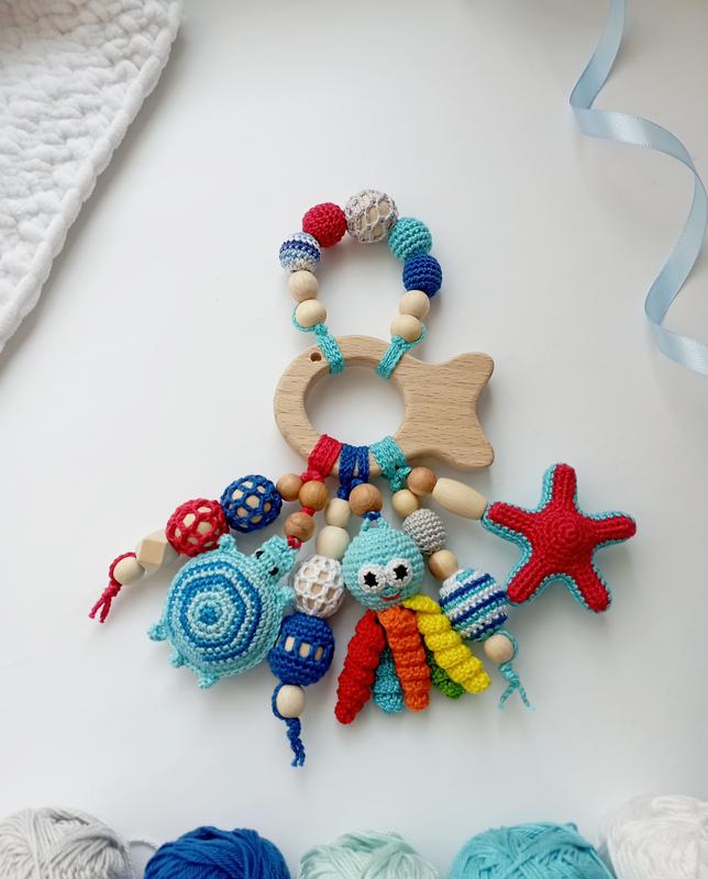Развивающая рыбка для малыша 🐢пищить ⭐погремает 🐙 дзвенить (6см) 🌱натуральные материалы Под заказ
