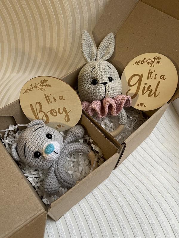 Іграшка ручної роботи , брязкальце вʼязане гачком «зайчик» ,ведмідь , ведмедик тедді, пода...