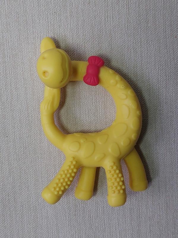 Прорізувач у формі жирафа Смікі Ідеальне рішення для прорізування зубів у немовлят. М'яка і безпечна гума з виступами принесе полегшення свербіння ясен, а цікаві форми змусять малюка не випускати прорізувач з рук. Характеристики: Використовувати з 6-го місяця. Виготовлений з безпечних матеріалів (силікону), що не містять БФА і фталатів. Розміри: 11x7x2 см. Новая, Без коробки