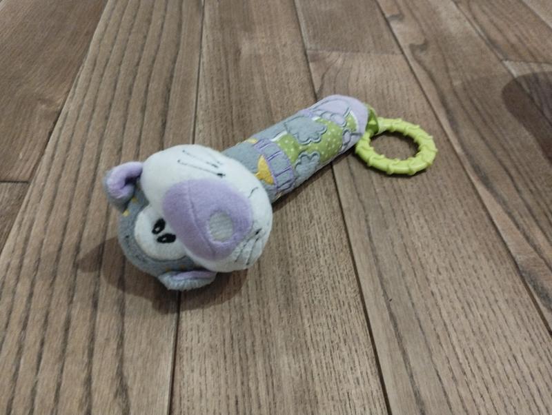 игрушка- пищалка мягкая с прорезывателем для зубов на конце, от сживания пищит, шуршит