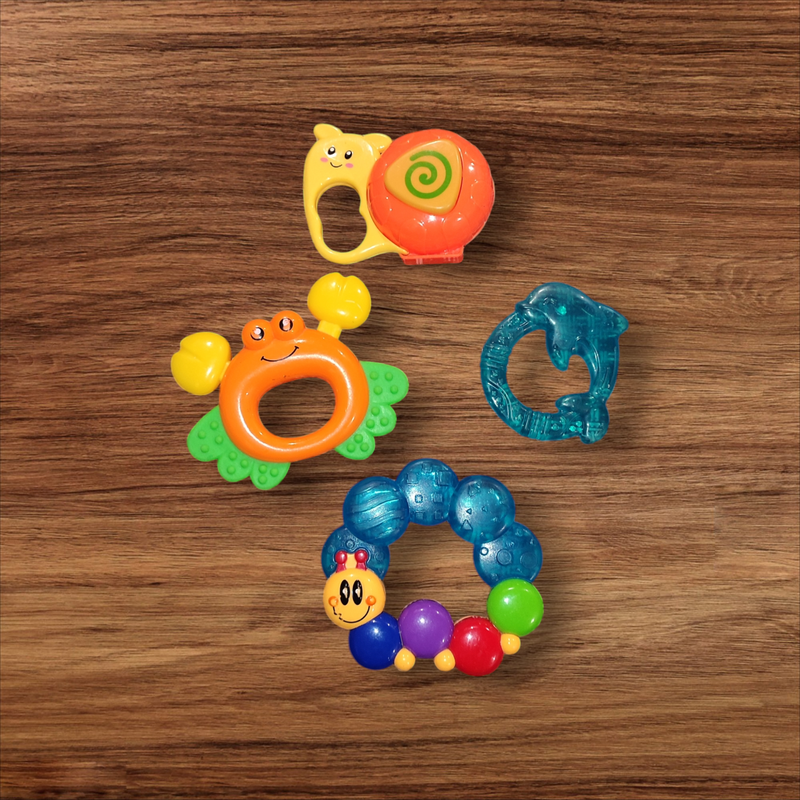 Дитячі іграшки для малюків Стан б/у, гарний на декількох іграшках зійшов малюнок трішки, але на експлуатацію не впливає . Також є дві іграшки з гризунком для прорізування зубчиків Всі питання будь ласка до покупки, повернення немає, оплата на картку!