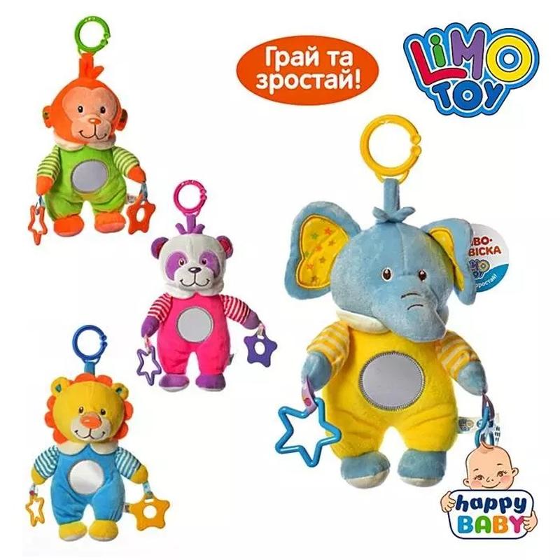 Подвеска на коляску D8041 4 вида, животные 30см, плюш., прорезыватель, погремушка, звук, в пакете 24*15*5см