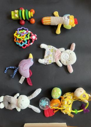 Игрушки для младенцев. Все в отличном состоянии. Больше фото при необходимости в привод. 1) Крокодил деревянный Selecta Spielzeug Размер 10,5•4,5 см Цена -198 грн 2) кольцо Chicco с разноцветными съемными кольцами в виде цветков. Диаметр основного кольца ~7 см, земных 5.5 см. Цена - 155 грн. 3) Девница Beauty Baby. При прикосновении шелестить туловище и голова. Размер - 19•10 см. Цена 199 грн. 4) птичка При потяжке повысит Размер ~15•7,5 см Цена - 140 грн. 5) Погремушка львенок babydream Размер - 16,5•10см. Цена- 125 грн 6) Жираф chicco Размер ~20•15 см Дефектив - пошкручивающийся стекль на оранжевом копе эти Цена- 230 грн 7) зайчонок-мочалка Minifeet для купания Размер ~ 30•30 см. Цена 299 грн. 8) птица с цветным клювом бряскотит при потяжке. Размер Цена - 150 грн 9) краб и малая птичка с фото 3,4 Размер Цена - 65 грн/шт 10) пластмассовая игрушка “Мишка с рыбкой” Fisher-Price. Размер - Цена - 165 грн 11) Лошадка мягкая игрушка Размер - Цена - 140 грн. 12) Слоненок Игрушка. Слоненя Benjamin Blümchen Все части тела крепятся к кольцам с емкая голова при потрепании погремушка Производитель Heunec Размеры (Д/Ш/В) 29,5/24,5/12,5 см вес 85 гр Идеальное состояние Цена 285 грн