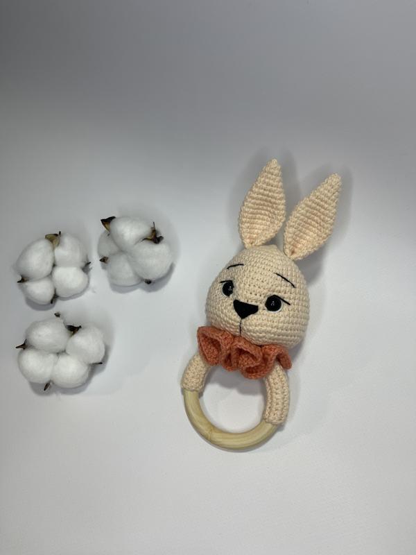 Игрушка ручной работы, погремушка вязаная крючком «зайчик», подарок на выписку, под заказ...