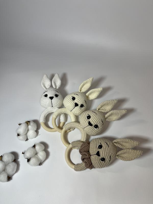 Іграшка ручної роботи , брязкальце вʼязане гачком «зайчик» , подарунок на виписку, під зам...