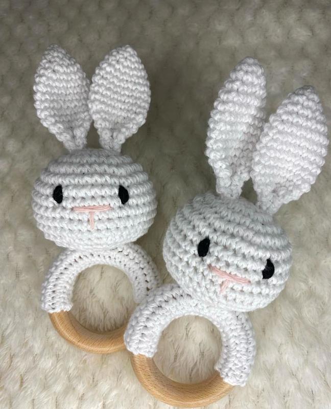 ✨ Милые вязаные погремушки в форме зайчиков! ✨ 🔹 Идеальны для малышей: натуральное деревянное кольцо с мягкой вязаной игрушкой. 🔹 Ручная работа, качественные материалы, безопасные для детей. 🔹 Станут отличным подарком для вашего малыша или на baby shower!