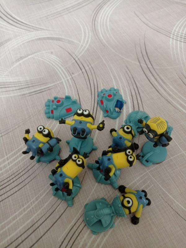 Семейка миньонов.Собранные из киндера.Можная клеить в ванной комнате.