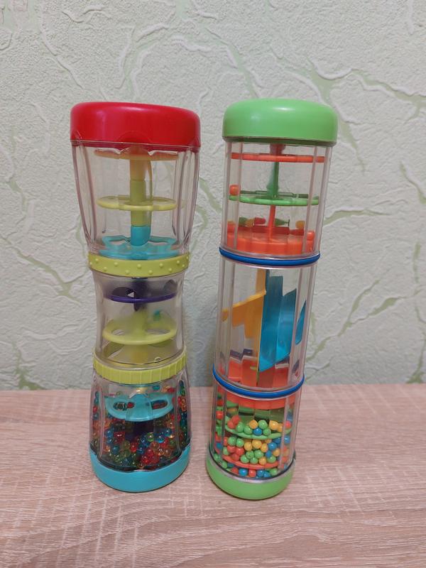 Игрушка-погремушка ELC Rainmaker, также известная как "Дождик" или "Каскад из бусинок". Это развивающая игрушка, предназначенная для младенцев и детей раннего возраста. Она представляет собой прозрачную трубку, наполненную разноцветными бусинками, которые пересыпаются внутри, создавая звук, похожий на шум дождя. Игрушка стимулирует зрительное и слуховое восприятие, а также помогает развивать зрительно-моторную координацию. Она подходит для сенсорного развития, поощряя детей исследовать окружающий мир через игру. Состояние красивое Цена указана за две Отправка за счет покупателя Нп или УкрПошта