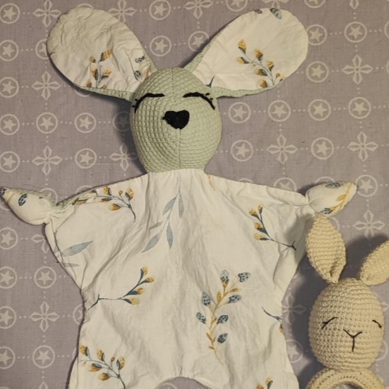 Нежный набор из хлопка, комфортер мытного цвета и грызунок. все в идеальном состоянии, как новое.