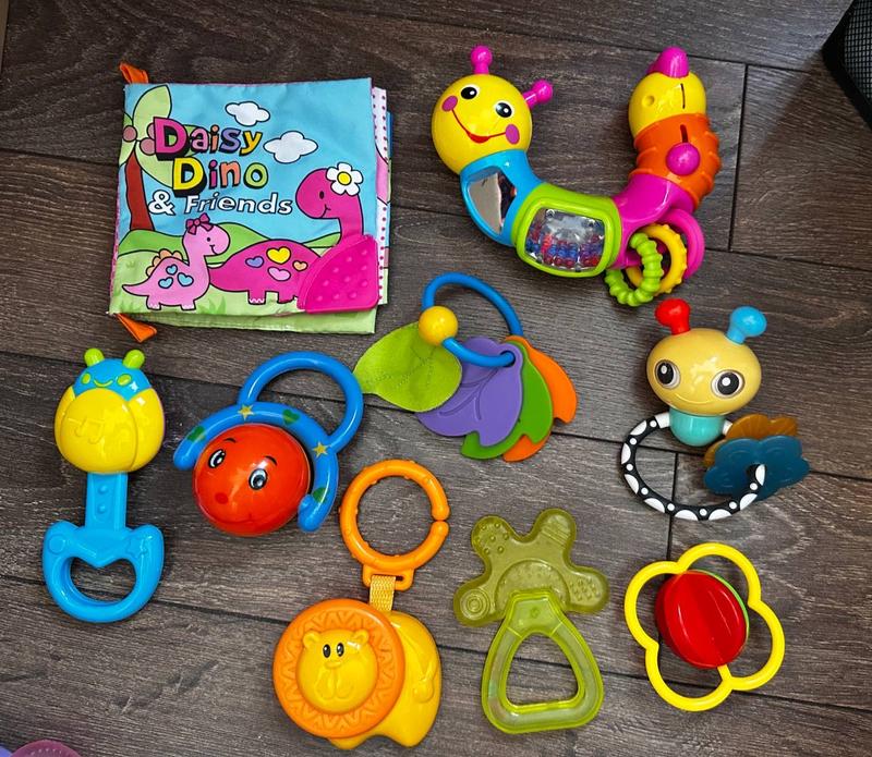 Детские игрушечки. Книжечка, погремушки и грызуны.