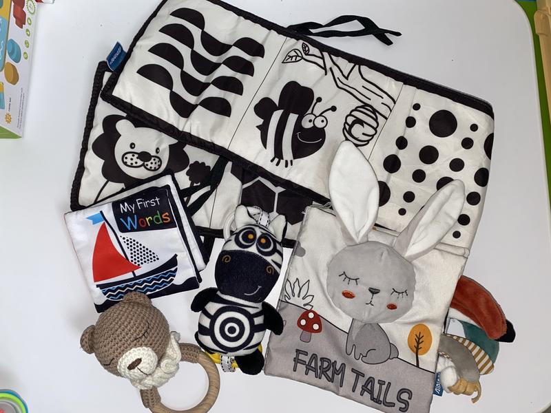 Все в хорошому стані. Книжки-шуршалки, брязкальця і підвіска у візок