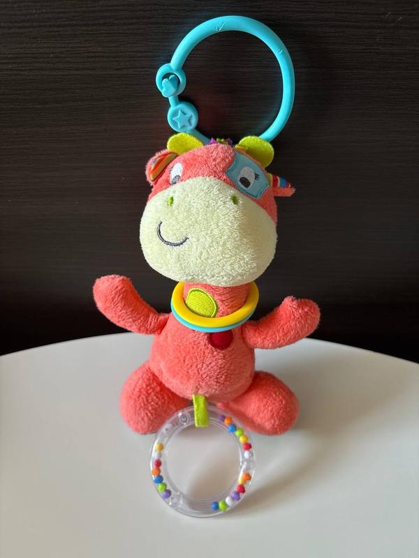 Іграшка WinFun Жираф - це багатофункціональна іграшка: прорізувач, брязкальце і підвіска. На голові у жирафа знаходяться атласні стрічки та вушка-шуршалки. Кріплення знімається, грати з іграшкою можна окремо. Яскраві тканини різної текстури будуть приємно шарудити і привертати увагу малюка при контакті з іграшкою, розвиваючи тим самим дрібну моторику та координацію рухів. Коли дитина братиме іграшку в руки і струшуватиме її, то вона почує кумедні звуки. У процесі гри малюк зможе розвивати звукове і тактильне сприйняття, а також вивчити форми предметів та їх кольори. Особливості: Шурхітливі вушка. Різнокольорові кільця та прозоре кільце з намистинами. Барвиста, м'яка, пухнаста іграшка, яку зручно тримати. Стан відмінний. Ціна 167 грн.🏷️ Мінімальне замовлення від 200 грн ❗️