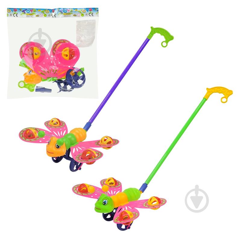 Каталка бабочка с ручкой и погремушкой, каталочка бабочка на полочке с погремушкой