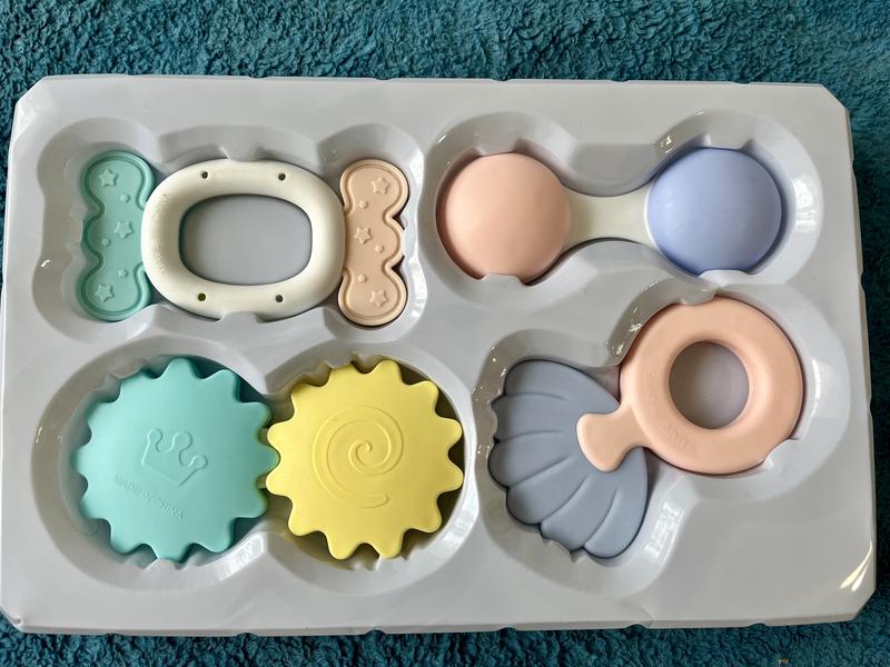 Набір брязкалець та прорізувачів для немовлят від Canpol Babies. Підходить з народження (0+). Дуже легкі, зручні для маленьких ручок, допомагають розвивати слух, зір та тактильні відчуття малюка. Стан: ідеальний, користувалися дуже мало. Дитина не гризла, тож слідів від зубів немає. Усі іграшки без пошкоджень У наборі: 4 різниі іграшки — брязкальця та м’які прорізувачі. Безпечні для дитини, не містять BPA.