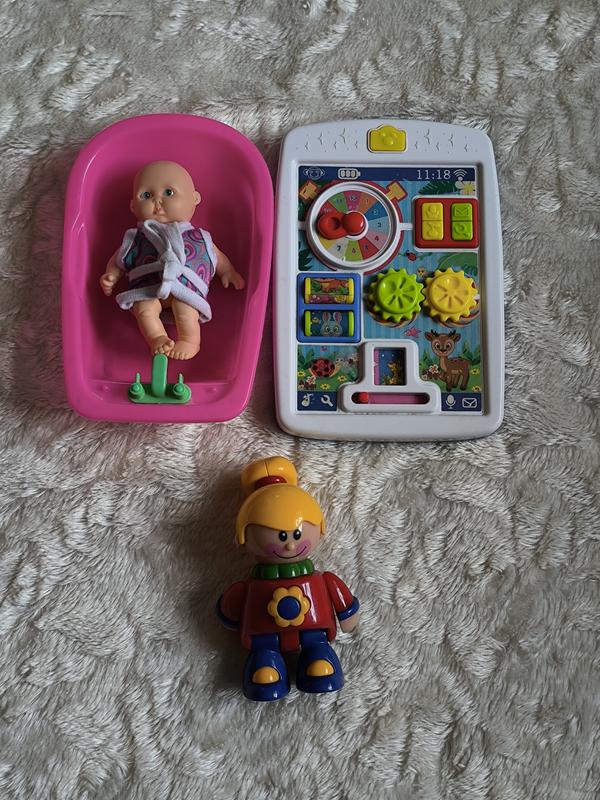 Сет игрушек для младенцев, для девочки. Для моторики рук. Состояние очень хорошее. Одна кукла фирмы Tolo. Цена указана за лот.
