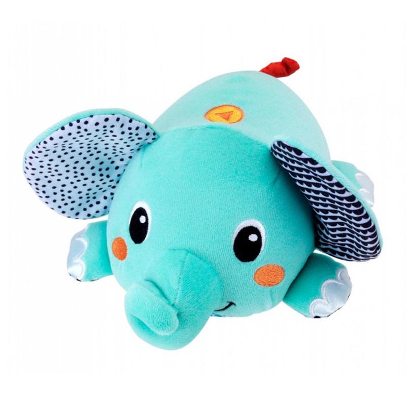 Підійде для малюків від 3 місяців і старше. Якщо натиснути кнопку на голові, слоненя починає рухатися і співати пісню. Крім того, його вушка мають текстурну поверхню, що дозволить малюкам розвивати тактильні навички та дрібну моторику. Моторчик виймається - тому іграшку можна легко випрати в пральній машині