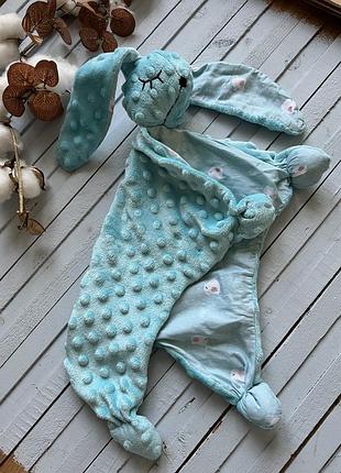 Зайчик плюшевий . Ручна робота. Для найменших діток як комфортнор, анти стрес, покривалце. Розмір без врахування голови 39х30