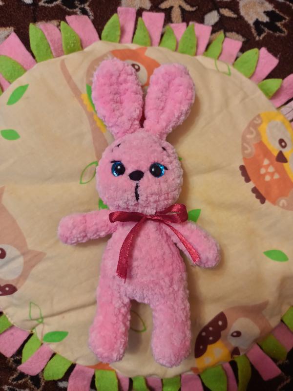 Игрушка "Зайчик" связана крючком из плюшевых нитей. Высота 18 см. Наполнитель - синтепон.
