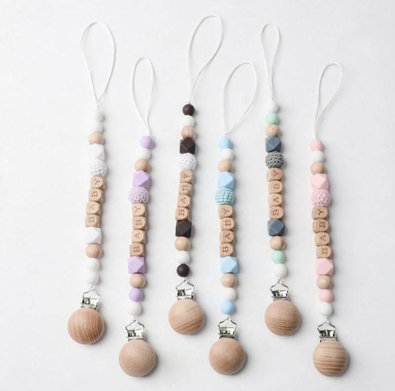 Тримач для пустушки з дерев’яними та силіконовими намистинами — стильний і практичний аксесуар для малюка. Завдяки зручній кліпсі легко кріпиться до одягу, запобігаючи падінню соски. Виготовлений із безпечних, гіпоалергенних матеріалів. Ідеально підходить для дому та прогулянок.
