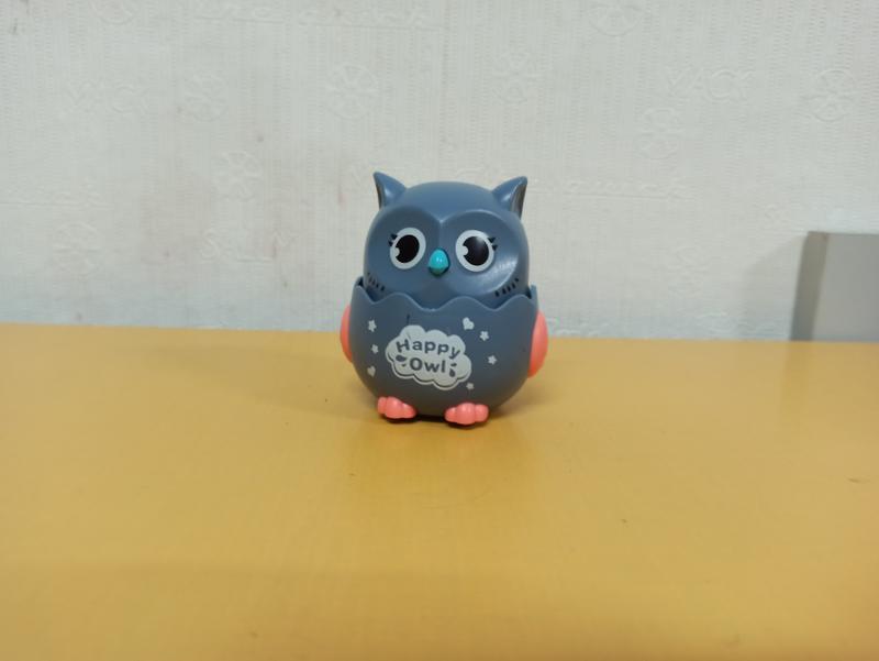 Игрушка инерционная, погремушка Счастливая Сова, MOONBIFFY Happy Owl Gray, заводится нажимом на голову