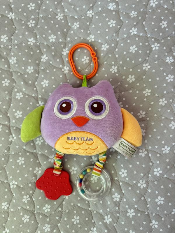 Сова підвіска на коляску baby team з брязкальцем та прорізувачем