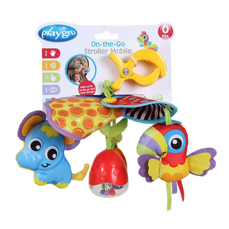 Мобиль на коляску Playgro Размер: 28 x 24 x 8.8 см. Удобно крепится к детской коляске. Разные текстуры. Маленькие шарики производят звук (к)