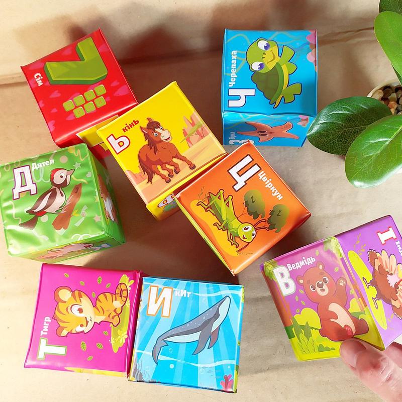 Детские мягкие кубики для купания с картинками "животные и алфавит" (набор из 8 штук)