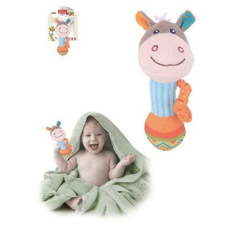 Очаровательная погремушка для малышей Эта мягкая и забавная погремушка станет идеальным выбором для вашего ребенка. Ее дизайн, выполненный в виде милого животного, не только привлечет внимание малыша, но и станет первым шагом в его игровом развитии. Изготовленная из приятной на ощупь ткани, погремушка является сертифицированной и абсолютно безопасной для малышей. Каждое движение вызывает мягкое бряцание, похожее на звук колокольчика, что развивает слуховые ощущения вашего ребенка. Основные характеристики: - Размеры: 8х4х15 см; - Изготовлена из мягкого текстиля; - Стилизована под животное; - В ручке прячется пискалка; - Имеет резиновый прорезыватель для малышей.