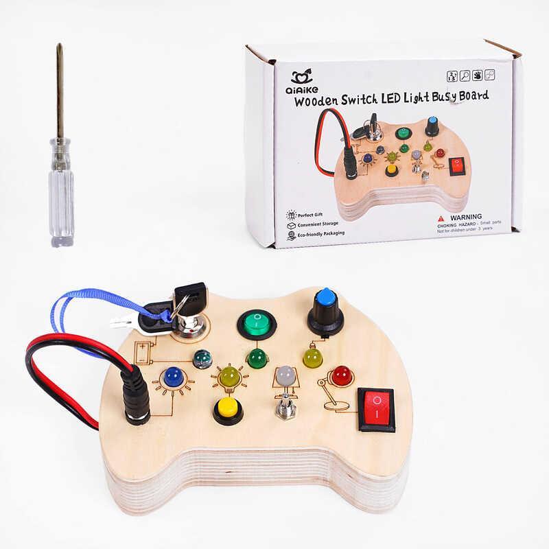 Развивающий бизиборд с подсветкой c 64864: 7 переключателей и отвертка в комплекте