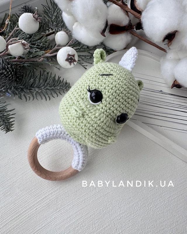 Вязаная погремушка - самая первая игрушка каждого малыша. Она развивает мелкую моторику пальчиков и имеет: -Имеет приятную текстуру -Колокол при колебании приятен, привлекает внимание малышей -Ее удобно держать в ручке -Можно грызть как колечко так и саму игрушку -Все детали прочно прошиты -Только гипоаллергенные материалы Уход: - можно стерилизовать паром - ручная стирка при 30° - сушить на горизонтальной поверхности подальше от нагревательных приборов