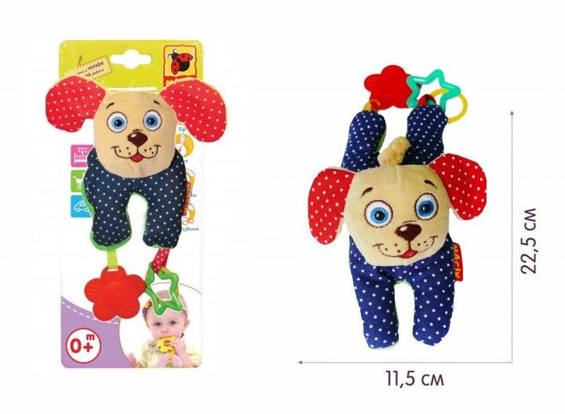 Развивающая игрушка с универсальным креплением на липучках. Забавную подвеску можно легко закрепить на ручке коляске, кроватке, автокресле или к дугам развивающего коврика. Малыш с удовольствием будет изучать игрушку, ведь в ней так много интересного: хрустящие ушки, разноцветные колечки, «вкусные прорезыватели». Приятная и мягкая на ощупь подвеска выполнена из натуральных слюновпитывающих материалов. Состав: х/б ткань, разнофактурные материалы, швейная фурнитура, звуковые элементы, холлофайбер. Размер: 11,5х22,5х11 см.