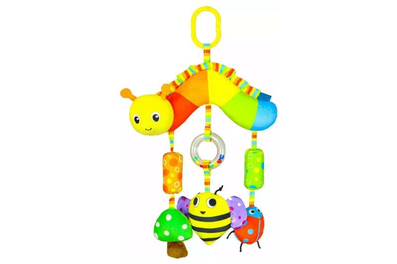 Брязкальце 9413a підвіска гусінь м'яке з дзвіночком, пищить в кульку р. 25*6*17 см.