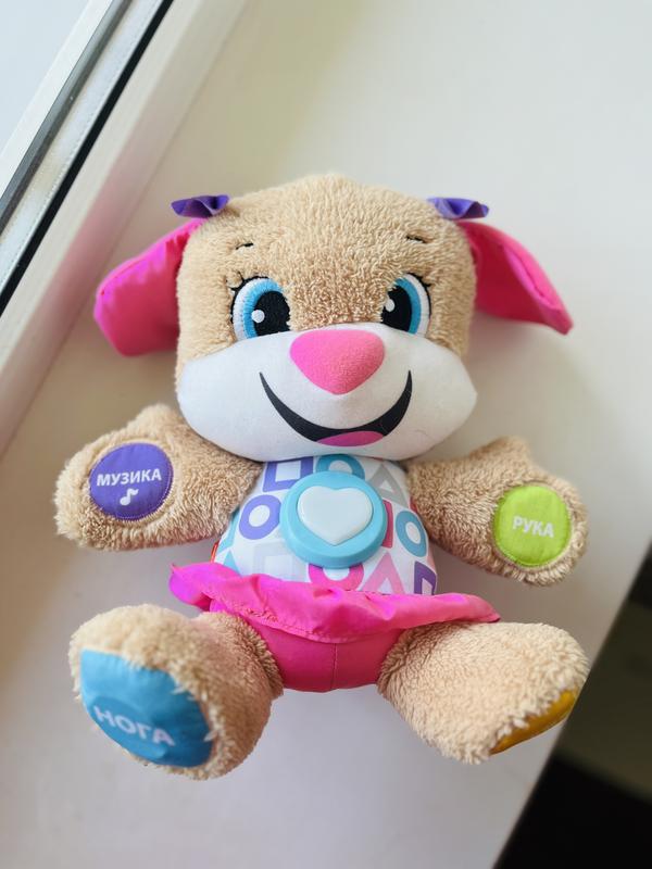 ІГРАШКА НА УКРАЇНСЬКІЙ МОВІ Плюшева навчальна іграшка для малюків, яка знайомить з понад 100 першими словами та пропонує понад 75 пісень, звуків, мелодій та фраз. Натисніть на руки, ноги, вухо та серце Сестрички (загалом 5 активацій), щоб засвітитися, почути музику, почути звуки та фрази. 3 рівні Smart Stages ростуть разом з вашою дитиною та навчають частинам тіла, формам, рахунку, алфавіту та багато іншого. Танцювальна вечірка! Натисніть і утримуйте світле серце Сестрички, щоб почути всі її пісні для спільного співу. Знайомство з причинно-наслідковою логікою та уявною грою для малюків та малюків віком від 6 місяців до 3 років. Купували в будинок іграшок за 2000, батарейки ще навіть не сіли! Стан нової тільки коробочку загубили