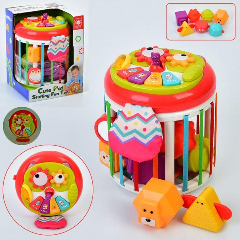 Гра розвиваюча грані-резинки, фігури 7 шт.(брязкальце,бризкалка/пискавка), ігрова панель з кріпленням,бат.