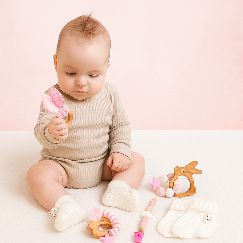 Подарочный набор для новорожденного. набор игрушек + носочки.