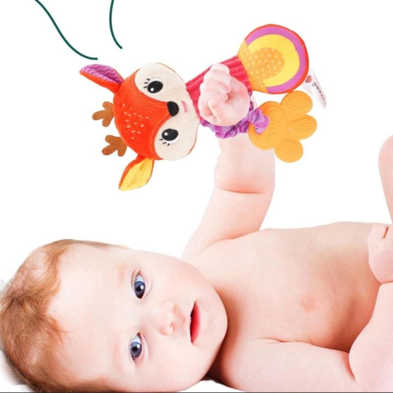 Мягкая развивающая игрушка-погремушка для новорожденных "олененок" с пищалкой и прорезыват...