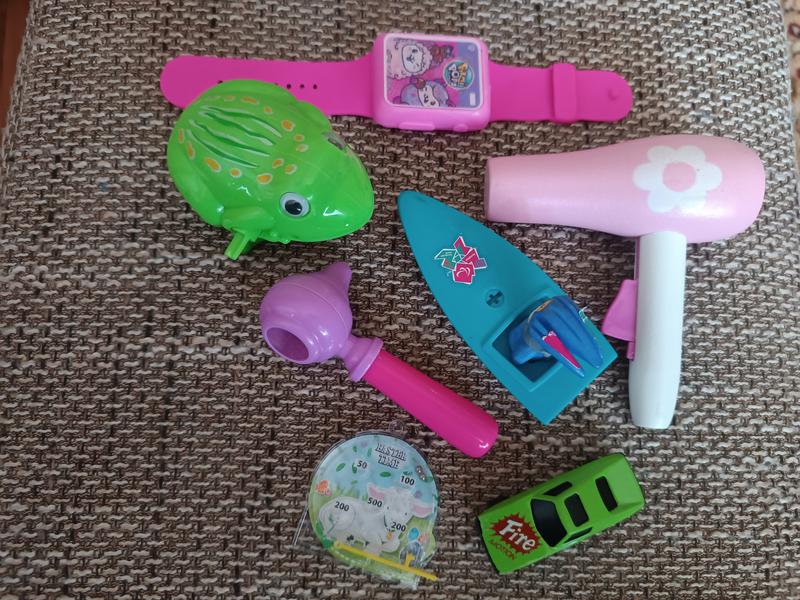 --- 🧸 Комплект игрушек для малышей | сюжетно-ролевые игры Яркий набор пластиковых игрушек для малышей, идеален для творческих игр дома или в дороге. Подходит детям в возрасте 2-5 лет. 📦 В наборе: - | Розовые детские часы с мультяшными персонажами - 💇♀️ Игрушечный фен с цветочным дизайном - 🎤 Микрофон розово-фиолетовый – для маленьких артистов - ⛵ Игрушечная лодка с фигуркой персонажа и логотипом London 2012 Paralympic Games - 🚗 Зеленая машинка с надписью "Fire" - 🐸 Лягушка на механизме — заводная - 🎯 Круглый диск с цифрами (100-500) — для игры или обучения счету ✅ Стан: Без повреждений, все элементы цели, механизмы работают. Легкий, безопасный пластик. 🎁 Отличный вариант для подарка или дополнения к детской коллекции. ---