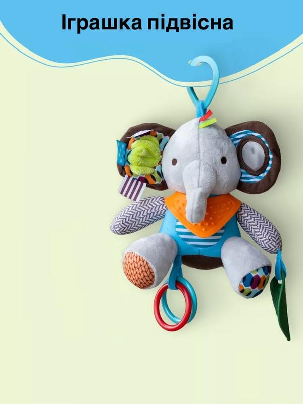 М’яка детская игрушка-подвеска брязкальце 0+ «Слоник» Милий Слоник-погримушка з прорезывателем — идеальный первый друг для новорожденных мальчиков і девочек. Его можно использовать в виде окрему мягкую игрушку — удобно вкладывать в ручку малыша, или ж подвесить на коляску, кроватка, автокресло, мобиль чи Монтессори-стойку благодаря специальном кольца. Это универсальная развивающая игрушка для детей от самого рождения і к 1 года. Слоник не требует батарейок, однак при трясиненные выдает звуки, что помогает ребенку формировать причинно-следственные связки: я двигаю — игрушка звучить! Кроме того, благодаря разнообразным текстурам і деталям, она стимулирует развитие мелкой моторики и тактильных ощущений. Игрушка стане чудовим подарком при Рождений малыша — зворушливим і практичным одновременно. В период прорезывания зубов (обычно после 3 месяцев) слоник снова стане в пригодится. Прорезыватель из безопасного силикона разработанный специально для нежных ясен новорожденных і поможет снять дискомфорт. Игрушка также стане у Пригодится для знакомства з частинами тіла (глаза, носик, вушка), изучение цветов и названий животных. А дзеркальце (не забудьте снять защитную пленка!) вызовет захват в каждой ребенка. В одному з вушок спрятана пищалка — ще один приятный сюрприз для малыша. І не стоит забывать: далеко не кожна прогулянка в колясці проходить спокойно, але з любимым слоником на видному месте она може стати настоящим удовольствием в виде для малыша, так і для мами. Игрушка є безопасной и имеет соответствующие сертификаты качества. Уход: ручне стирка при температуре 30°C.