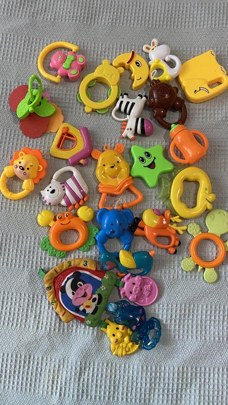 Набір різних брязкалець, гризунців для немовлят. В хорошому стані. Фішер прайс не працює музика. Свинка повнюстю справна та грає музика.